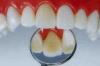 | できるだけ歯を削らずにセラミックスの薄片を歯の表面に貼りつけます。永年の使用にも変色せず、天然歯の美しさを保ちます。 |