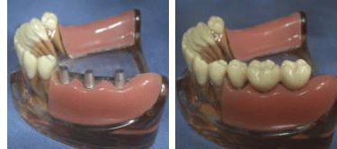 残っている自分の歯やインプラントに磁石を取り付け、磁石の吸引力で義歯を安定させます。